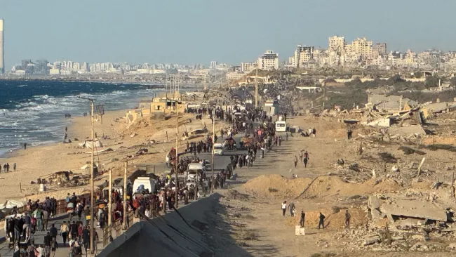Palestinians return to the northern Gaza Strip as the first phase of ceasefire agreement comes into effect, Oct. 10, 2025.In the backdrop of the strained deal, thousands of Palestinians began returning to northern Gaza on Friday under a tense and partial Israeli withdrawal. The army said it redeployed by noon, though it still controls key zones in Rafah, Khan Younis, and eastern Gaza.
