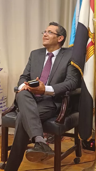 It was around 9:30 p.m. when Elbalshy entered the Heikal Hall on the fourth floor, where the ballot count was underway. He sat beside the stage, visibly elated, preparing for the announcement. The preliminary results had already calmed his nerves after hours of tension.