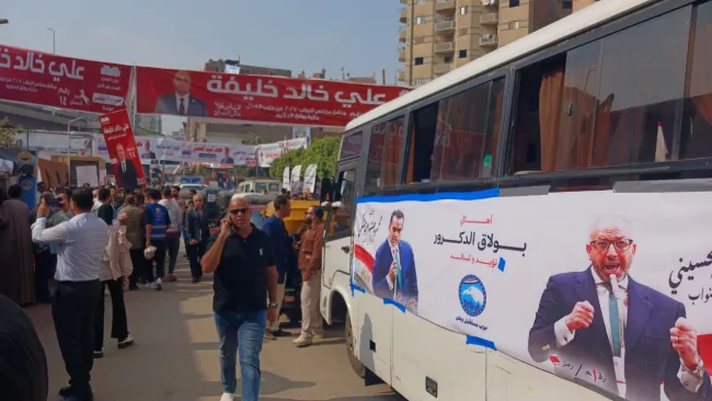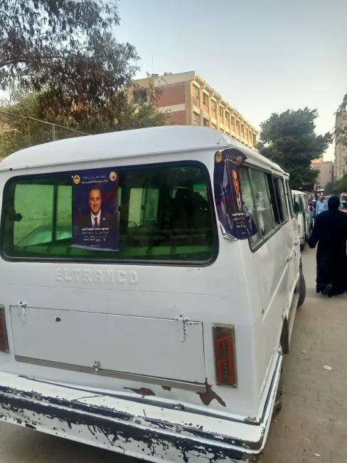 By midday, the turnout was moderate. At polling stations like Sheikha Gawaher, Taha Hussein, and the Azhar Primary Institute, dozens of women and elderly voters arrived in microbuses bearing campaign posters.