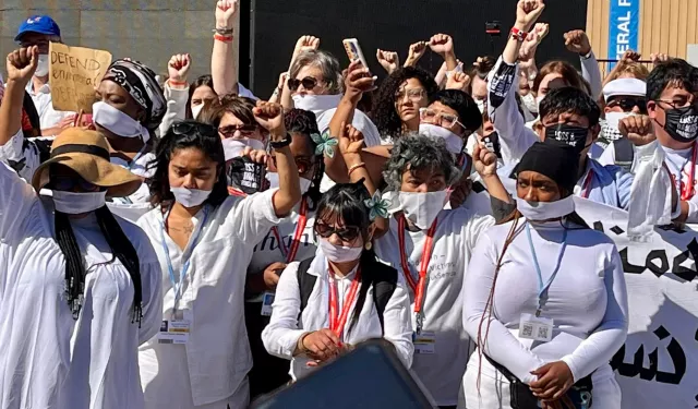 وختمت تكتلات المجتمع المدني خطابها مدينة ما وصفته بـ"تغاضي" الحكومات المشاركة في محادثات COP27، عن انتهاكات مصر لحقوق الإنسان، الأمر الذي يضع حسبها "مصداقية اتفاقية الأمم المتحدة الإطارية بشأن تغير المناخ بأكملها على المحك".