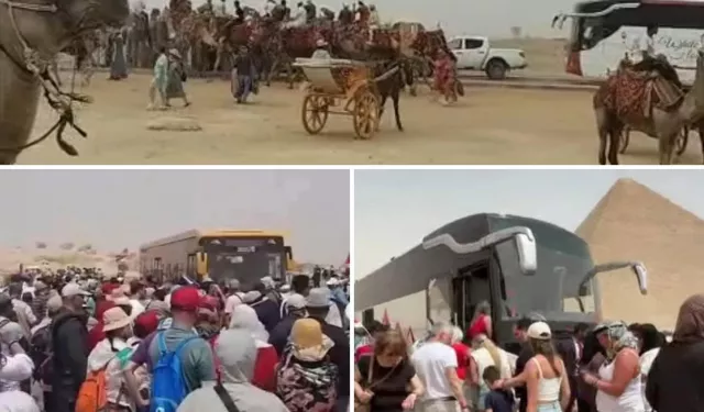 شهدت منطقة أهرامات الجيزة، أمس، حالة من التكدس والزحام عند المدخل الجديد على طريق الفيوم مع التشغيل التجريبي لمشروع تطوير الخدمات بالمنطقة، وذلك بسبب عدم التزام بعض الخيالة والجمالة بالمنطقة المخصصة لهم، وقطعهم طريق الأوتوبيسات الخاصة بالمشروع التابعة لشركة أوراسكوم بيراميدز للخدمات الترفيهية المملوكة لنجيب ساويرس.