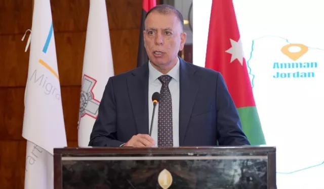 وزير الداخلية الأردني مازن الفراية أثناء ترؤسه الاجتماع السادس لمجلس إدارة المعهد التدريبي لشراكات الهجرة في البحر المتوسط، 10 أبريل 2025