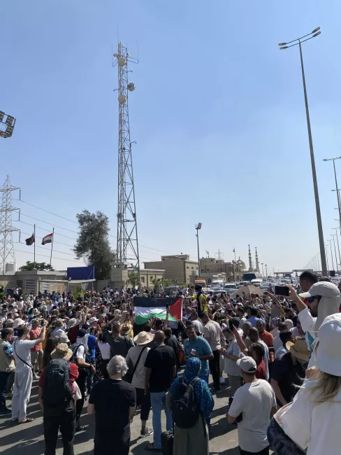 وتلقى المشاركون رسالة صباحية تدعوهم للتحرك في مجموعات صغيرة بسيارات أجرة، والوصول بين الساعة 1:30 و4:00 عصرًا "هناك موقع تخييم سنتجمع فيه، حيث ستنضم جميع الوفود لنُظهر قوتنا الجماعية من أجل فلسطين". وطُلب من المشاركين عدم التحرك في مجموعات كبيرة "لأن التظاهر دون تصريح ممنوع وفقًا للقانون المصري"، حسب بيانات واردة على تليجرام.