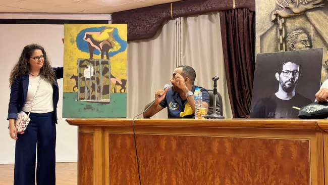ندوة بنقابة الصحفيين لمناقشة كتاب "ديالكتيك الفن" للمفكر البريطاني جون مولينو، الذي ترجمه أشرف عمر، 20 يوليو 2025وخلال ندوة عُقدت بنقابة الصحفيين مساء أول أمس تضمنت المطالبة بالإفراج عن أشرف عمر، قال مقرر اللجنة الثقافية بالنقابة محمود كامل، إن هناك 23 صحفيًا محبوسين على ذمة قضايا تتعلق بحرية التعبير، مؤكدًا استمرار النقابة في المطالبة بالإفراج عنهم.