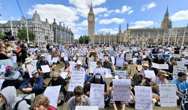 وتجمع ظُهر أمس مئات الأشخاص أمام مبنى البرلمان البريطاني للاحتجاج على حظر المنظمة، ورفع الكثير منهم لافتات كُتب عليها "أنا أعارض الإبادة الجماعية" و"أنا أؤيد فلسطين أكشن"، وقالت بولي سميث، متقاعدة، (74 عامًا) وشاركت في احتجاجات أمس "لسنا إرهابيين، يجب أن نقول إن Palestine Action لها الحق في الوجود ويجب رفع الحظر"، وفق الشرق الأوسط.