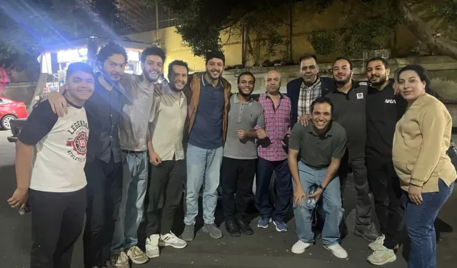 نشطاء أسطول الصمود المصري عقب الإفراج عنهم من قسم الدقي، 13 أكتوبر 2025