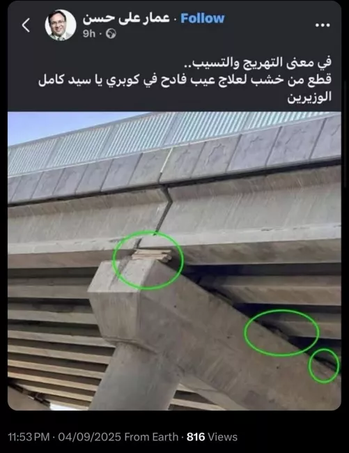 بوست عمار علي حسن المحذوف والذي دارت التحقيقات اليوم عنه، سبتمبر 2025ومن جانبه، قال المحامي الحقوقي خالد علي إن "الدكتور عمار أكد في التحقيق أنه نشر الصورة حينها لكونها كانت متداولة بكثافة، ولم يصدر أي نفي رسمي من وزارة النقل لمدة ثلاثة أيام رغم وجود مركز إعلامي للوزارة، مما جعله يعتقد بصحتها".