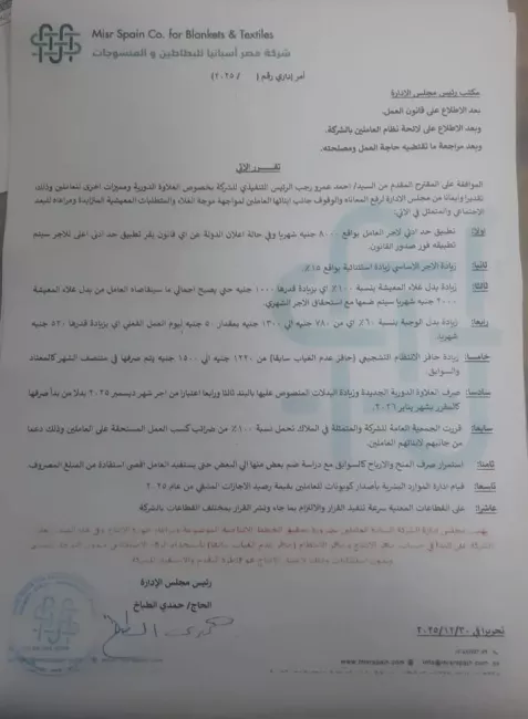 لاحتواء غضب العمال.. "مصر إسبانيا للبطاطين" ترفع الحد الأدنى للأجور إلى 8 آلاف جنيه