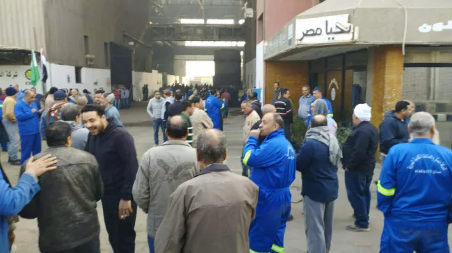 جانب من اعتصام عمال مصنع المعدات بمجمع سكر الحوامدية، 10 يناير 2026
