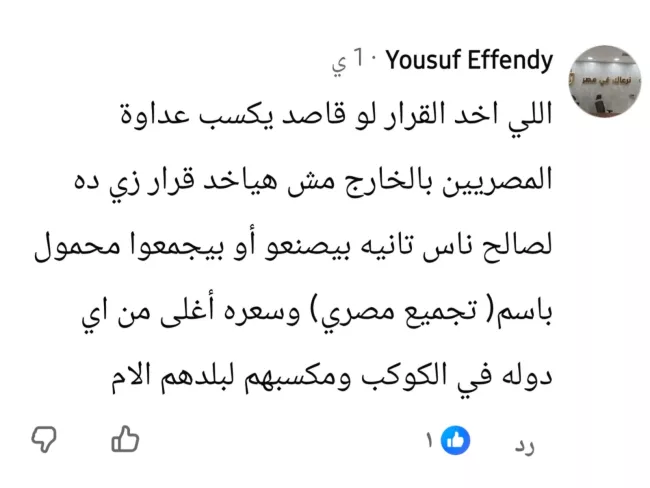 أحد المواطنين معترضًا على قرار الحكومة إلغاء إعفاء الهواتف من الجمارك، 23 يناير 2026وأشار إلى دعوة رئيس الوزراء مصطفى مدبولي لعقد اجتماع طارئ خلال الأسبوع الجاري، لمناقشة ملف الرسوم الجمركية على الهواتف بشكل كامل.