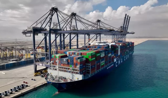 سفينة حاويات على محطة البحر الأحمر لتداول الحاويات رقم 1 بميناء السخنة، 15 ديسمبر 2025