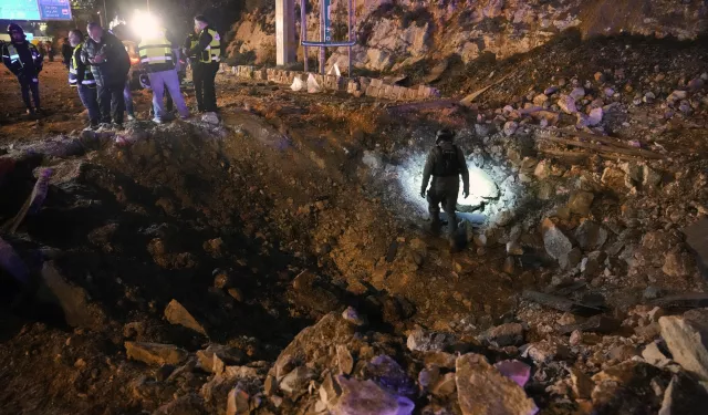 قوات الأمن الإسرائيلية تتفقد طريقًا متضررًا من صاروخ أطلقته إيران على القدس، 1 مارس 2026