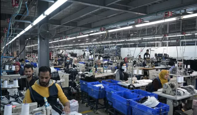 صورة نشرت في 10 ديسمبر 2024 لعمال في مصنع "أكاي" للملابس الجاهزة في بورسعيد أثناء زيارة رئيس الوزراء له