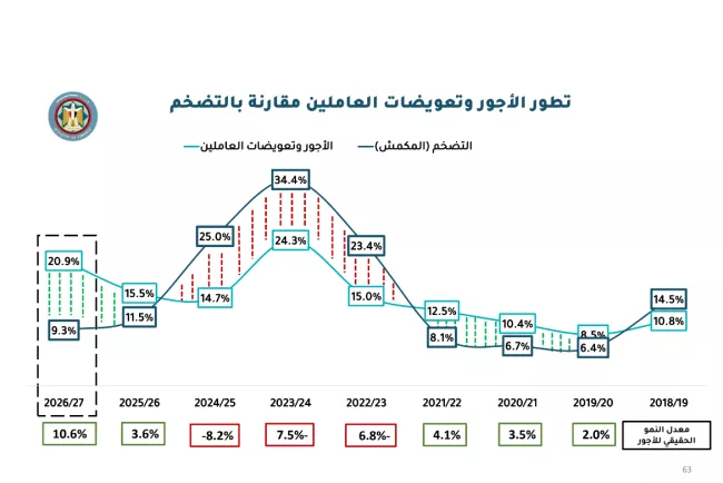 الحكومة تتوقع نموًا قياسيًا للأجور الحقيقية في الموازنة الجديدة.. وتبني تقديراتها على تضخم منخفض