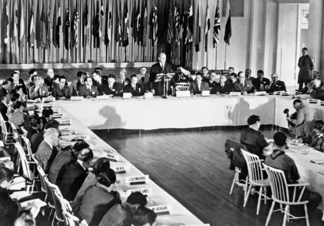 نتج عن مؤتمر بريتون وودز إنشاء صندوق النقد الدولي/IMF والبنك الدولي للإنشاء والتعمير IBRD، الذي سيصبح لاحقًا البنك الدولي، لتوفير الدعم المالي والفني للدول في جهود إعادة الإعمار والتنمية اللازمة بعد الحرب. في تلك اللحظة، تم تحديد الدولار الأمريكي كعملة احتياطية رئيسية مع ربط العملات الأخرى به، مما عزز من هيمنة الولايات المتحدة اقتصاديًا.