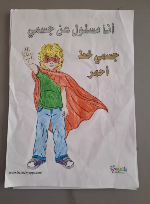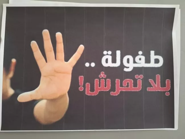 وتؤكد على ضرورة أن يبلغ الطفل والديه بأي موقف يتعرض له، "وزعنا مجموعة كبيرة من الصور للتوضيح، زي لا تلمسني، جسمي خط أحمر".
