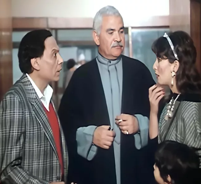 مشهد يجمع عادل إمام وآثار الحكيم وأنور إسماعيل، من فيلم النمر والأنثى، من إنتاج عام 1987