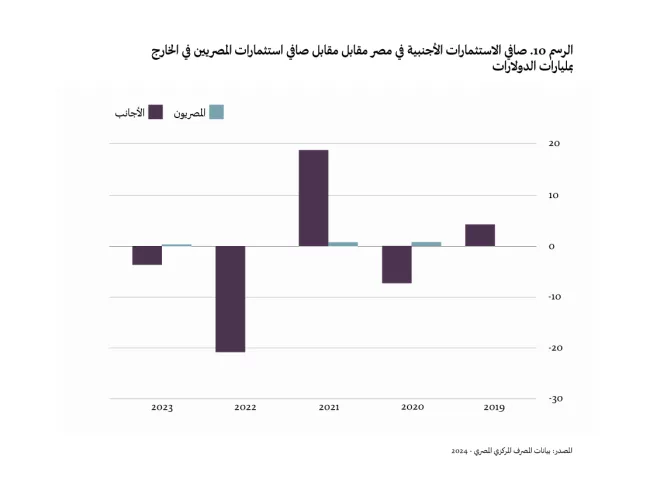 وبينما تمتلك المؤسّسات المالية بشكل عام قدرة كبيرة على الضغط على الحكومة لرفع الفائدة، فإن المؤسسات الأجنبية على وجه الخصوص لديها قدرة أكبر من نظيرتها، لأن الأولى لديها بدائل أكثر للاستثمار في الدين العام من الثانية. نستطيع أن نستنتج ذلك عبر النظر إلى صافي استثمارات محفظة الأجانب في مصر في مقابل صافي استثمارات محفظة المؤسّسات المقيمة بمصر في الخارج.