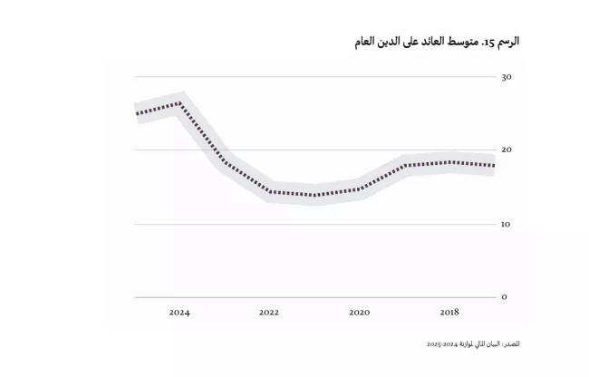 من جهة أخرى، شهد متوسط العائد على الدين العام صعودًا قويًا، ما يعكس نسبيًا التعرّض القوي للعولمة المالية في خلال السنوات الأخيرة ومن ثم الانتقال السريع إلى أثر ارتفاع الفائدة الأميركية إلى سوق الدين المحلي في مصر.