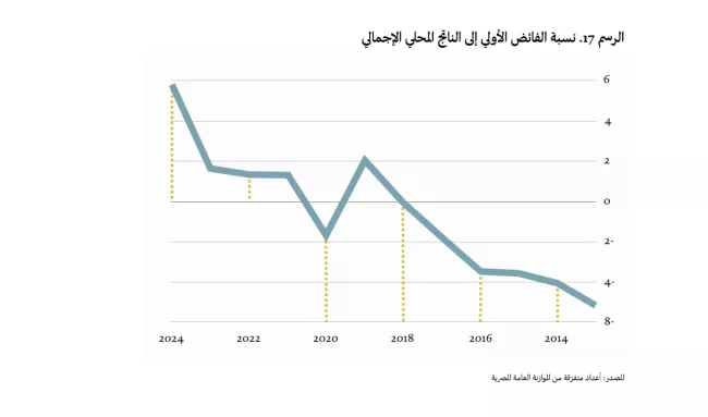 ساهمت زيادة عبء الدين في ارتفاع مجمل الدين العام، ومع ازدياد مخاطره لجأت مصر إلى الأسلوب الكلاسيكي المتعلّق بزيادة الفائض الأولي أو التوسّع في بيع الأصول العامة للسيطرة على هذه المخاطر، وبينما كانت فرص زيادة الضرائب محدودة بالنظر إلى ضعف قدرة الدولة على تتبع الاقتصاد غير الرسمي، وتعطّل صفقات بيع الأصول بسبب عدم استقرار سعر الصرف، تم التركيز على التقشف وسيلة أساسية لتعظيم الفائض الأولي للموازنة، ومن ثم كان صعود هذا الفائض أفضل مؤشر للتعبير عن استخلاص فائض القيمة من المواطنين لصالح الدائنين.