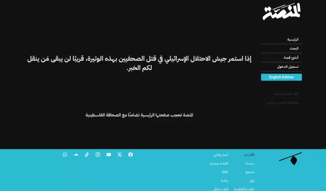 المنصة تحجب صفحتها الرئيسية تضامنًا مع الصحافة الفلسطينية، 1 سبتمبر 2025