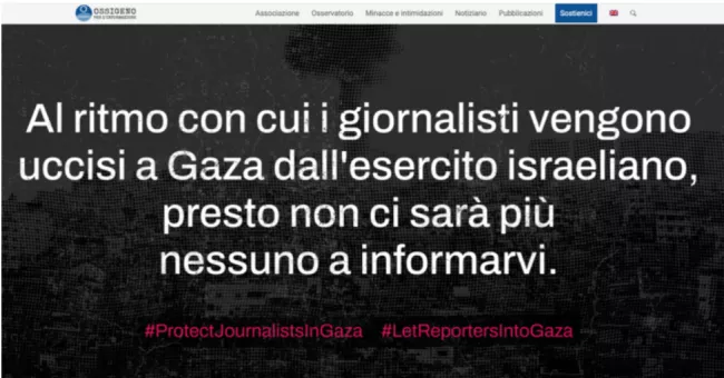 صحيفة Ossigeno الإيطالية تضامنًا مع الصحفيين في غزة، 1 سبتمبر 2025.