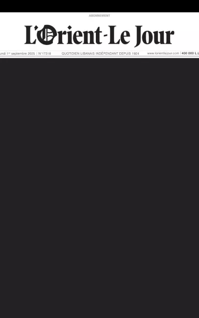 صحيفة L'Orient-Le Jour الكندية تسود صفحتها الرئيسية تضامنًا مع الصحفيين الفلسطينيين في غزة، 1 سبتمبر 2025