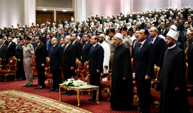 إن الدولة المصرية وهي تحتفل اليوم بـ 1500 سنة من ذكرى مولده الشريف، صلى الله عليه وسلم، لتعقد العزم على المضي قدمًا في تحفيز كافة مؤسسات الدولة، سواء الدينية أو التعليمية أو الإعلامية وغيرها، على الانطلاق بقوة نحو منظومة القيمة الأخلاقية الرفيعة التي تبني الإنسان على الفكر والعلم والإبداع من ناحية مع الارتباط الصادق بالله جل جلاله من ناحية أخرى.