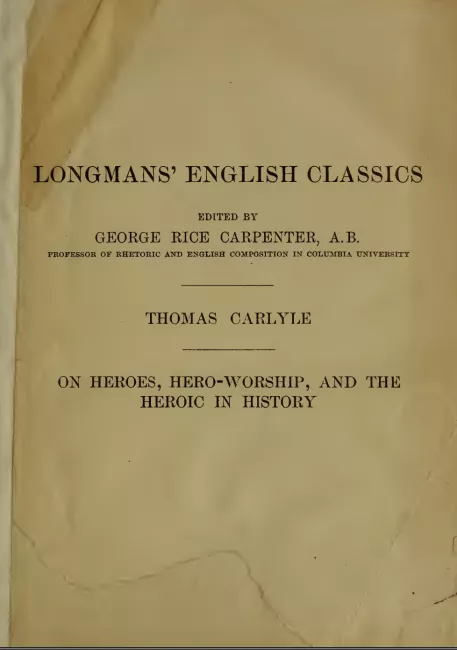غلاف كتاب الأبطال وعبادة البطولة، تأليف توماس كارليل (1841)