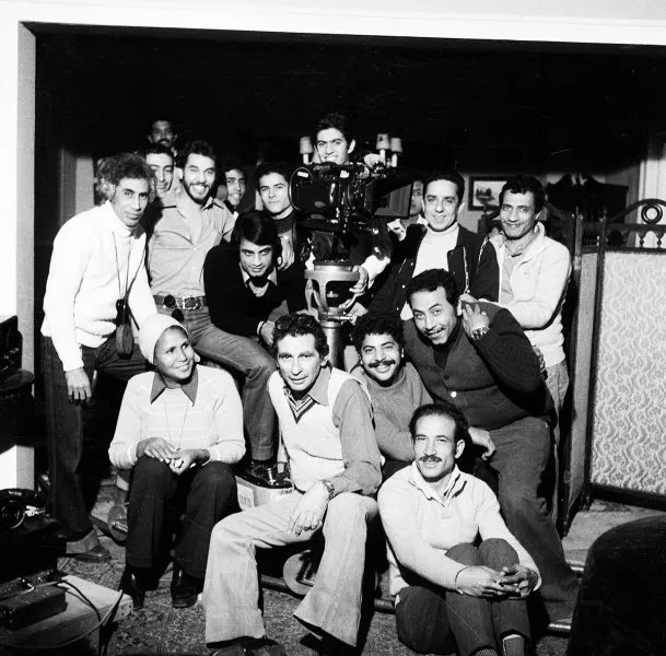 يوسف شاهين وبعض أفراد طاقم عمل فيلم "إسكندرية ليه؟" (1978) أثناء التصوير.