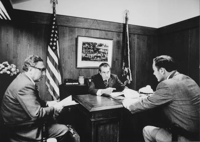 كان كيسنجر مستشارًا للأمن القومي الأمريكي بداية من 1969، ثم وزيرًا للخارجية من 1973 إلى 1977، أي ثماني سنوات في قلب الإدارة الأمريكية جمع في اثنتين منها المنصبين (مستشار الأمن ووزير الخارجية)، من 1973 إلى 1975. وخلال تلك الفترة قاد سياسة انفراج التوترات مع الاتحاد السوفيتي، بما في ذلك التفاوض على اتفاقية الحد من الأسلحة الاستراتيجية.