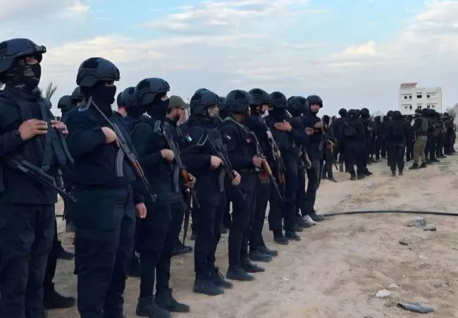 اصطفاف عناصر تابعة لما تسمى "القوات الشعبية في غزة"، 6 ديسمبر 2025