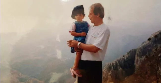 الكاتبة لمى كريم مع جدّها في جنوب لبنان، صورة غير مؤرخة في مطلع الألفية