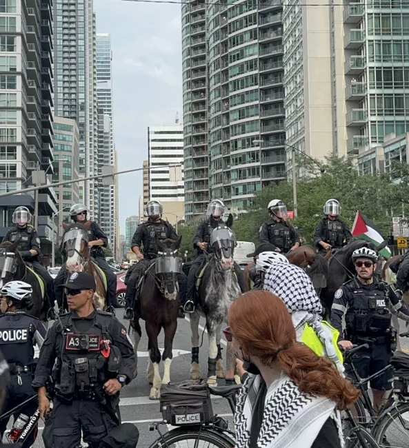 الشرطة في تورونتو تراقب مظاهرة متضامنة مع الفلسطينيين، يوليو 2025
