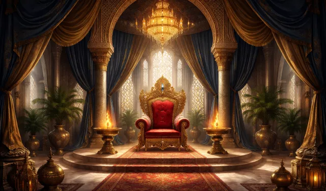 كرسي حكم في قصر عربي متخيَّل