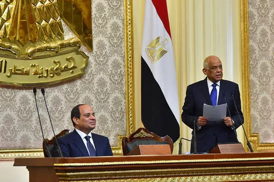 والآن، وإعمالًا لنص المادة 144 من الدستور، ليتفضل السيد الرئيس عبد الفتاح السيسي، رئيس الجمهورية، بأداء اليمين الدستوري.